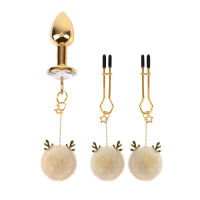 Солодкість та чуттєвість можуть йти пліч-о-пліч — і цей чарівний набір є найкращим доказом. Золота анальна пробка з блиском кристалу та парою м’яких помпонів — це ідеальна пропозиція для тих, хто цінує як естетику, так і пікантні відчуття. Весь набір доповнюють затискачі на соски з тими ж помпонами, які м’яко стимулюють кожний ваш рух… і кожен дотик.