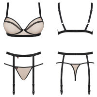 - тілесний комплект білизни з колекції Nudelia - бюстгальтер, пояс для панчох і стрінги