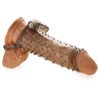 Мягкая, гелевая, открытая накладка для эрекции полового члена и яичек. Эротическая насадка со стимулирующими вставками для ласки влагалища и со вставкой для массажа клитора. Секс-гаджет для пар с вибромоторчиком, усиливающим ощущения обоих партнеров во время секса. Накладка мягко прижимает половой член по всей его длине и вокруг яичек, благодаря чему регулирует кровоснабжение пещеристых тел, усиливает эрекцию, продлевает эрекцию и задерживает эякуляцию. Небольшое сужение к головке полового члена приводит к тому, что крайняя плоть оттягивается от головки и блокируется, а головка все время остается открытой. Накладка очень эластичная в месте кольца для яичек и достаточно гибкая по длине, поэтому надеть ее не проблема. В набор входит флакончик с интимным гелем для усиления удовольствия.