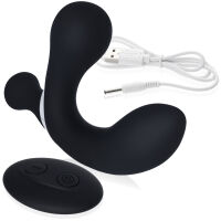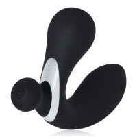 З вигляду скромний, чорний і елегантний. Але як тільки почне працювати... все інше втрачає значення. Цей витончений масажер простати з додатковою виступом для стимуляції промежини знає, як зробити так, щоб ти відчув себе королем власних насолод — і все це за допомогою пульта! Завдяки гнучкій конструкції він точно потрапляє туди, куди потрібно, а 10 програм вібрацій плюс режим TURBO підносять тебе на вищий рівень відчуттів. Соло чи вдвох — цей гаджет завжди потрапляє в ціль!