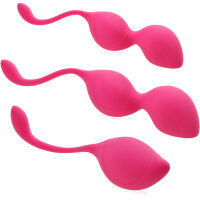 Набор из трех шариков гейши эргономичной формы, выполненных из гигиенического и гипоаллергенного медицинского силикона. С помощью этих шариков Ты можешь тренировать мышцы Кегеля, которые отвечают за сохранение здоровья интимных органов женщин, а также значительно улучшают ощущения во время секса. Они помогают усилить ощущения, как у женщин, так и у мужчин. Тренировку следует начинать с легких шариков и регулярно, примерно каждые две недели/месяц менять шарики на более тяжелые. Важно, чтобы тренировки были регулярные! Шарики необходимо закладывать не во время пассивного отдыха, а, например, во время бытовых действий(уборка), потому что именно тогда мышцы имеют шанс на развитие. Внутри шариков находятся шарики меньшего размера, которые начинают вибрировать во время движения. Такая вибрация оптимизирует тренировку, предоставляя мышцам дополнительные стимулы для развития.