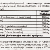 Сибірський женьшень впливає на оживлення організму, збільшення фізичної витривалості. Допомагає викликати та поліпшити ерекцію. Покращує концентрацію та координацію. Протидіє відчуттю втомленості. Допомагає підтримувати добрі сексуальні стосунки.