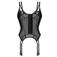 Obsessive Arrowel чорний корсет з мереживом + ремінці до панчіх - 75714773
