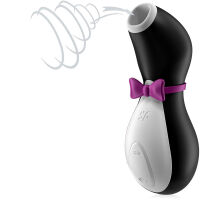 Одягнутий у елегантний смокінг Пінгвін для безконтактної стимуляції клітора. Пристрій поєднує в собі революційну технологію пульсуючого масажу повітрям з чарівним і веселим дизайном. Масажер з білим животиком та вишуканою метеликою здивує вас інтенсивним, багаторазовим оргазмом, якого ви досягнете всього за декілька хвилин. Цей надзвичайно досконалий масажер для клітора обладнано 11 рівнями інтенсивності хвиль всмоктування. Достатньо прикласти носик навколо клітора і вибрати улюблену установку. Пінгвінчик готовий до гарячого побачення вдвох або розваг на самоті. Відрізняється надзвичайно дискретним, тихим, як шепіт, двигуном. Ви можете використовувати його без побоювань, що інші вас почують. Тонка і ергономічна форма робить Пінгвінчик дійсно зручним і його можна легко сховати в шухляді або сумочці. Завдяки легкості у користуванні та інноваційній технології Пінгвін чудово підходить для початківців. Виготовлений з поєднання матеріалу ABS і супер м'якого, безпечного для тіла медичного силікону, який гладкий на дотик і надзвичайно гігієнічний. Завдяки водонепроникному (IPX7) покриттю іграшку можна безпечно використовувати у воді і легко чистити. Пінгвінчик, запакований в елегантну коробочку, ідеально підходить як стильний подарунок для сучасної жінки.