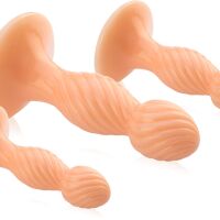 Три анальные пробки разных размеров для новичков и мастеров в анальных ласках. Изготовлен из гибкой и эластичной гелевой массы. Размещены на больших прочных присосках, позволяющих играть независимо друг от друга в разных позах. Волнистые полосы, которыми они были покрыты, гарантируют интенсивный массаж чувствительного заднего прохода. Специальная форма приспосабливается к его интерьеру и делает момент нанесения наибольшим удовольствием. Комплект обеспечивает моменты незабываемого удовольствия. Так что, если вы хотите попробовать эту эйфорию или уже долго не испытывали ее, этот набор идеально вам подойдет.