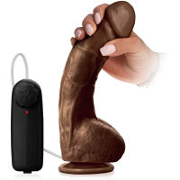 Как всадник? По-собачьи? С помощью этого пениса вы можете делать все, что хотите. Это 22 см в длину и почти 5 см в диаметре! В нижней части пениса размещена присоска, которая позволит вам позволить себе больше! Вибратор коричневого цвета, очень реалистично напоминающий настоящий пенис, то есть у него красиво вырезьбленная головка, многочисленные вены по всей длине, а основание пениса украшено двумя красивыми яичками. Вибратор также имеет вращающуюся головку, которая позволяет находить вашу самую чувствительную точку, приводя к интенсивному оргазму. Кроме того, вращательное движение управляется с помощью пульта дистанционного управления, входящего в набор. Интенсивность скорости вращения можно регулировать от нежной до очень сильной. Теперь только учитываются ваше воображение и мега мега оргазм!