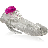 Насадка для эрекционной стимуляции, изготовленная из эластичного гелевого материала, снабжена множеством выпуклостей. Мягкие язычки, которые стимулируют клитор, скрывают мини-вибратором, который предоставит вам удивительные ощущения. Дополнительный длинный язычок позаботится о втором отверстии вашего партнерши! Насадка приспосабливается к каждому пенису и дополнительно расширяет его на 2 см, благодаря полному наконечнику. Эффективно может увеличить эрекцию, продолжительность полового акта и помочь задержать эякуляцию.