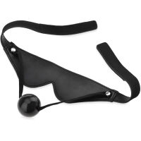 Эротическая маска BDSM, закрывающая глаза и затыкающая ротик. Кляп с резиновым шариком, помещенный на эластичную резинку, эффективно поработит покорного человека и не позволит ему противиться вашей воле. Кожаная повязка на глаза на 100% непроницаема, привнесет элемент таинственности и позволит еще больше подчинить партнера во время острых BDSM-игр. Шарик крепится к маске с помощью защелок. Таким образом, вы сможете легко разобрать ее и использовать оба гаджета отдельно.