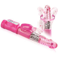 Открой для себя новый способ страстного удовольствия. Вращающийся вибратор изготовлен из очень деликатного, высококачественного гелевого материала. Многочисленные линии стимуляции размещены по всей поверхности проникающей части, которая с нежностью поласкает внутреннюю часть влагалища. Внутри вибратора размещены металлические шарики, которые вращаются по кругу, если включить программу вращения, что позволяет гаджету одновременно массировать стенки влагалища. Вибратор оснащен клиторальным стимулятором в форме кролика, длинные ушки которого поласкают Тебя 36 способами. Основное ядро гаджета и клиторальный кролик оснащены независимыми, вибрирующими моторчиками. Возможность изменения направления вращения шариков, откроет для Тебя новые уровни ласки. Тебе никогда не надоест такое разнообразие ощущений.
